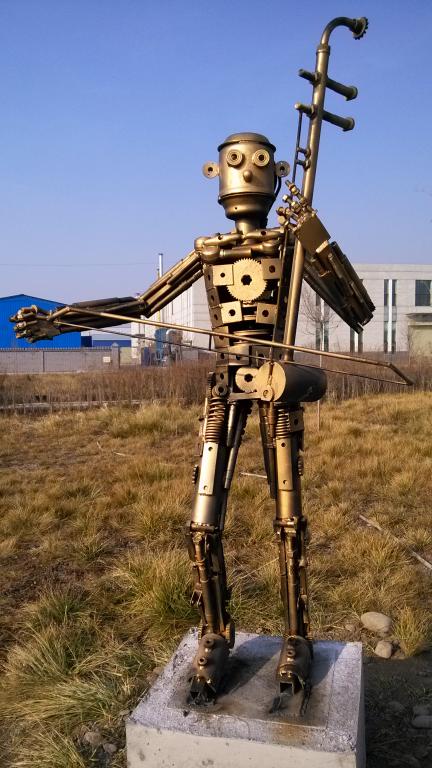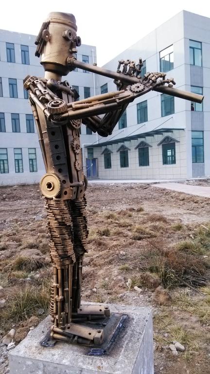 2016年11月,杨刚老师在bt365国际版杨刚工作室创作出地球仪和机械乐队共5件雕塑。其中地球仪雕塑尽高4.5米,球体直径3.6米;机械人乐队雕塑4件,分别尽高1.7米,题材取自西北民族聚居地人们常见的几种乐器,分别为:维族冬不拉、回族短笛、汉族二胡、唢呐,寓意吹拉弹唱,歌颂了西北民族之间的和谐、大团结,雕塑的制作延续了杨刚老师一贯的机械环保风格。